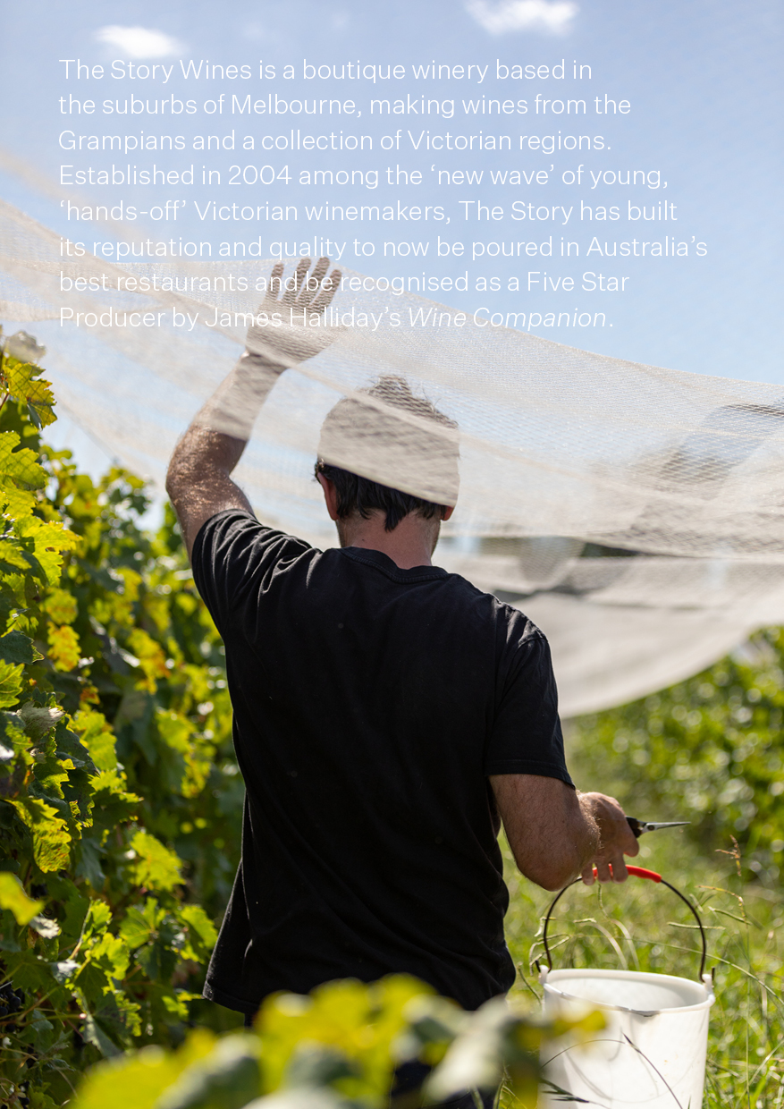 We named our winery The Story over a few drinks with friends back in 2003. I explained that we seemed to lack all the usual ingredients to a grand winery name. We owned no vineyards, so couldn’t name it after that, or a hill, creek, valley or river. Our family had no history in wine, so the Lane name would have meant nothing to anybody, and we didn’t have any children or even a dog to name it after. Our friend concluded “you just have the stories that go along with how you make it”, and we loved the way it connoted a connectedness to others, a sharing, and a present tense. It felt current, and it felt like a way to talk to people. Every wine is a story.